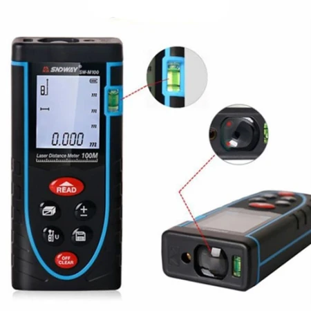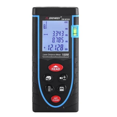 +> Thước đo khoảng cách laser cầm tay Sndway SW-M100 chính hãng Sndway SW-M100 là sản phẩm máy đo khoảng cách chính hãng chất lượng cao, sử dụng để đo và xác định khoảng cách những vật nằm trong phạm vi dưới 50m, có thể tính toán nhanh diện tích và thể tích thông qua thiết bị.