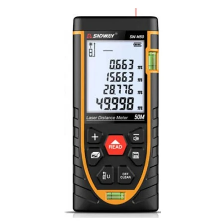 +> Thước đo khoảng cách laser cầm tay Sndway SW-M50 chính hãng Sndway SW-M50 là sản phẩm máy đo khoảng cách chính hãng chất lượng cao, sử dụng để đo và xác định khoảng cách những vật nằm trong phạm vi dưới 50m, có thể tính toán nhanh diện tích và thể tích thông qua thiết bị.